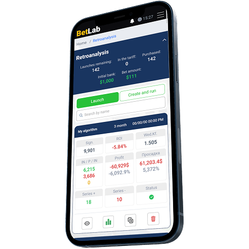 We also have an affiliate program: share a link, invite users, and receive a percentage of their purchases. BetLab combines analytics, forecasting, and profitability in a single platform, allowing you to turn ideas into real results. The platform's flexibility allows for the creation of both simple and complex algorithms, suited to any purpose or scenario. This is where your analytics are turned into concrete results and growth opportunities.